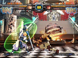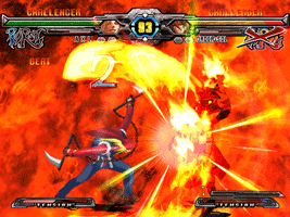 On peut dire que c'est l'élément le plus caractéristique de la série Guilty Gear. Utilisez-le comme bon vous semble afin d'annuler un rush/combo ou un coup classique.